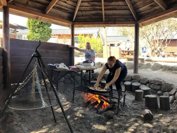 Her er et stemningsbillede fra, når der bliver lavet frokost over bål.