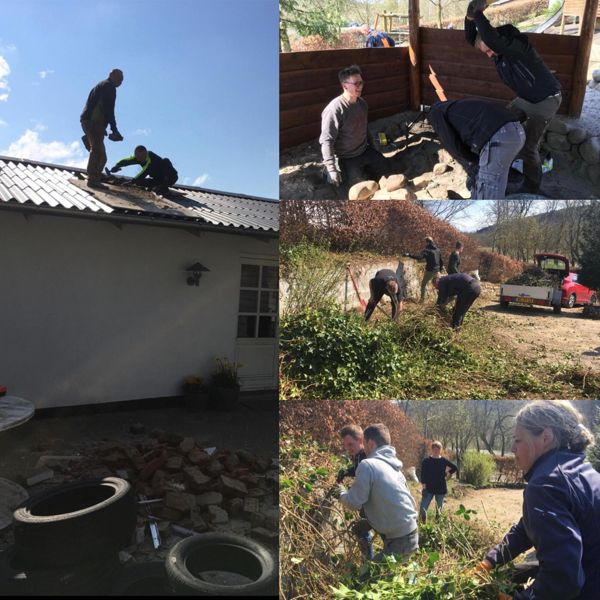 Forældrene giver en hånd til at hjælpe til med huset, både inde og ude.
